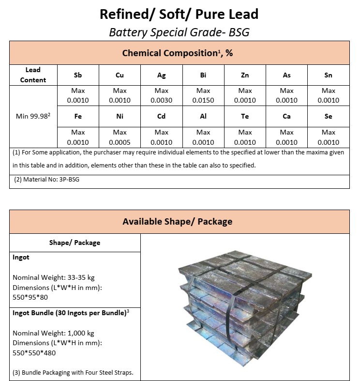 مبنای London Metal Exchange (LME) برای سرب نرم/ خالص، خلوص حداقل ۹۹.۹۷% طبق استاندارد BS-EN-12659 می باشد. طبق استاندارد مذکور، سرب خالص به چهار گروه ۹۹.۹۴%, ۹۹.۹۷%, ۹۹.۹۸۵%, ۹۹.۹۹% دسته بندی شده است و شرکت معدنی کانه آرا کاشان، انواع شمش سرب خالص را طبق درخواست مشتری تولید می کند.